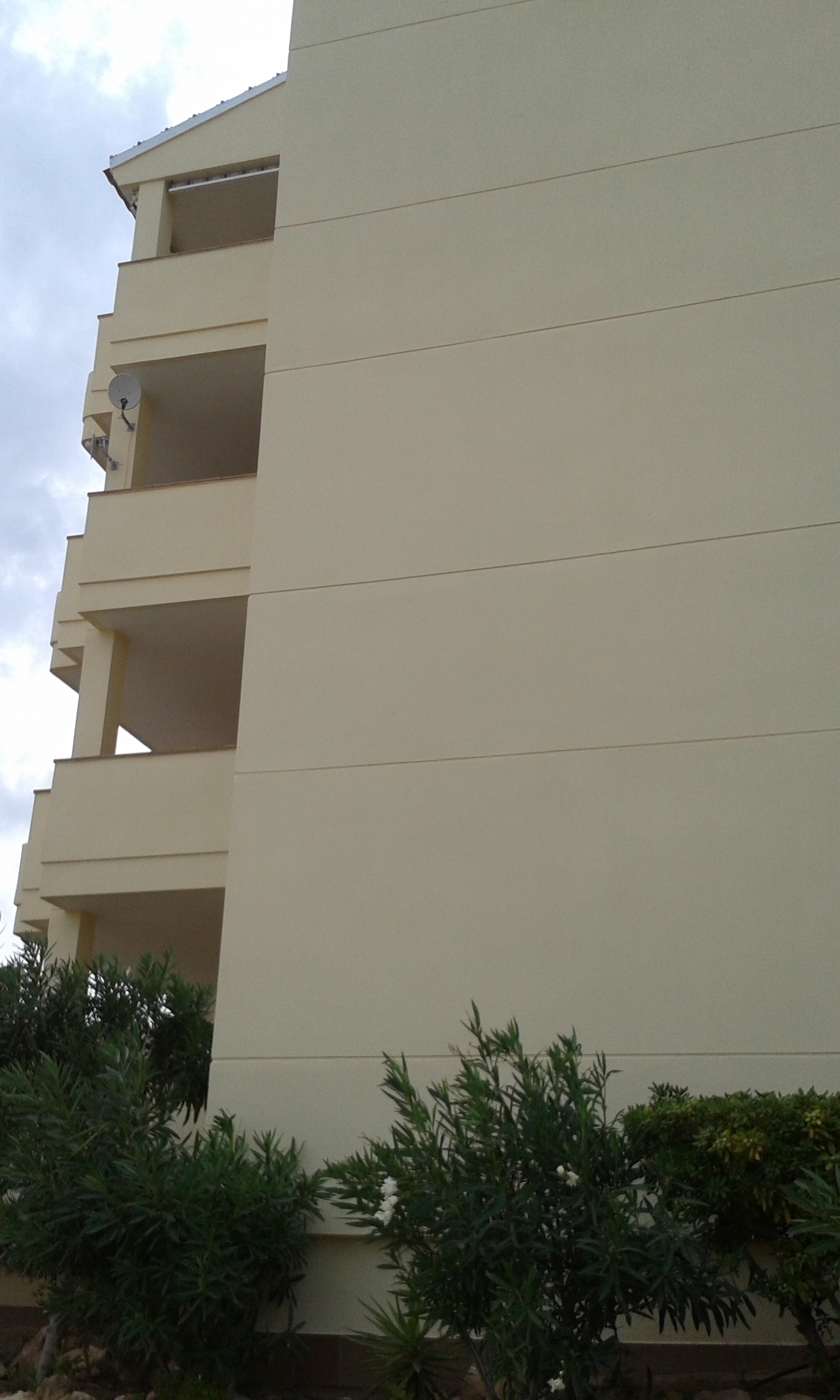 La Urbanización Lomas de Campoamor Fase Los Naranjos ha sido rehabilitada con Revestimiento Elastómero Color, diseñado y ajustado por los laboratorios de Pinturas Baños.